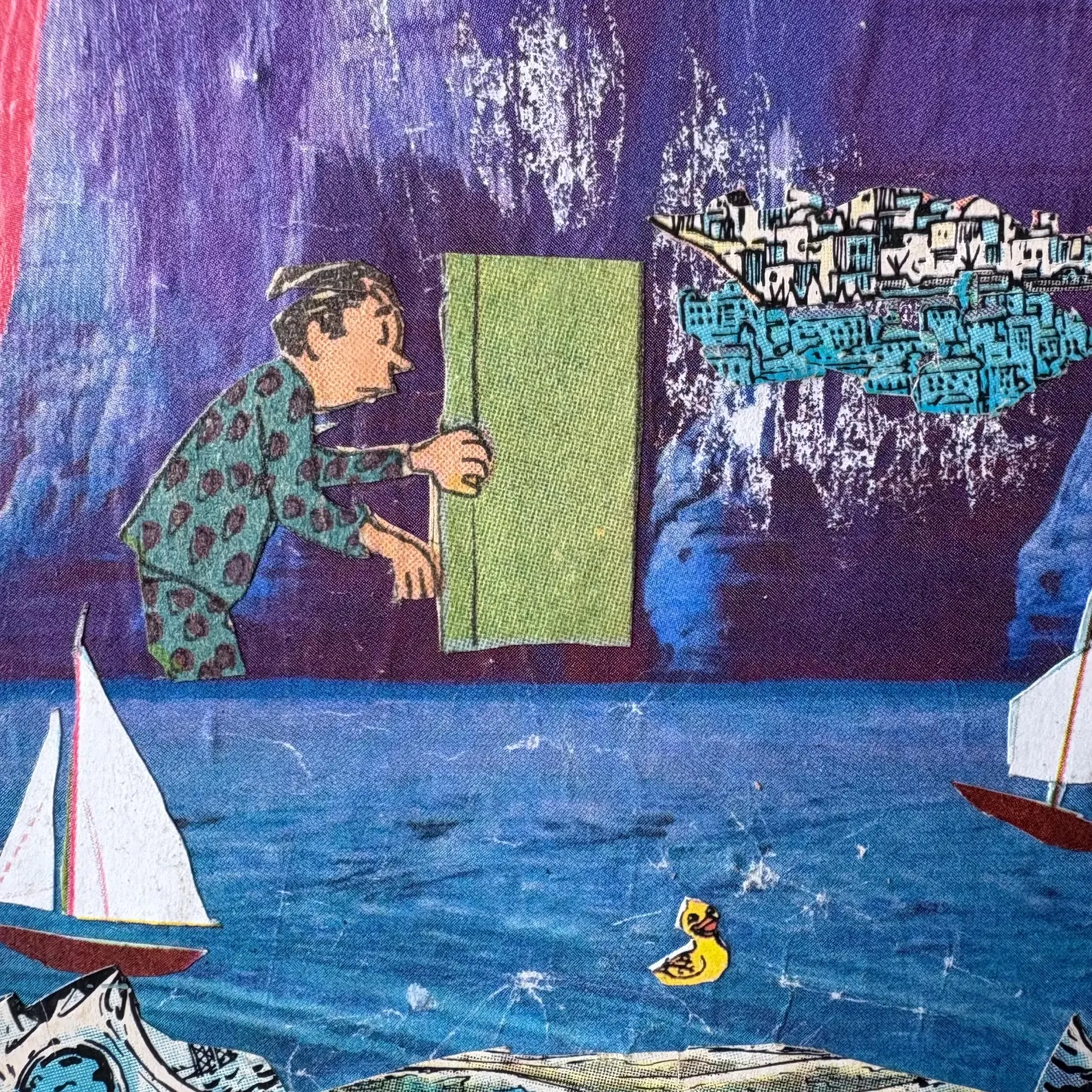 Back Door Apocalypse / Paranoid Android – Original Vintage Collage Art Surreal Pop Culture Mixed Media Framed by Kim Lawson