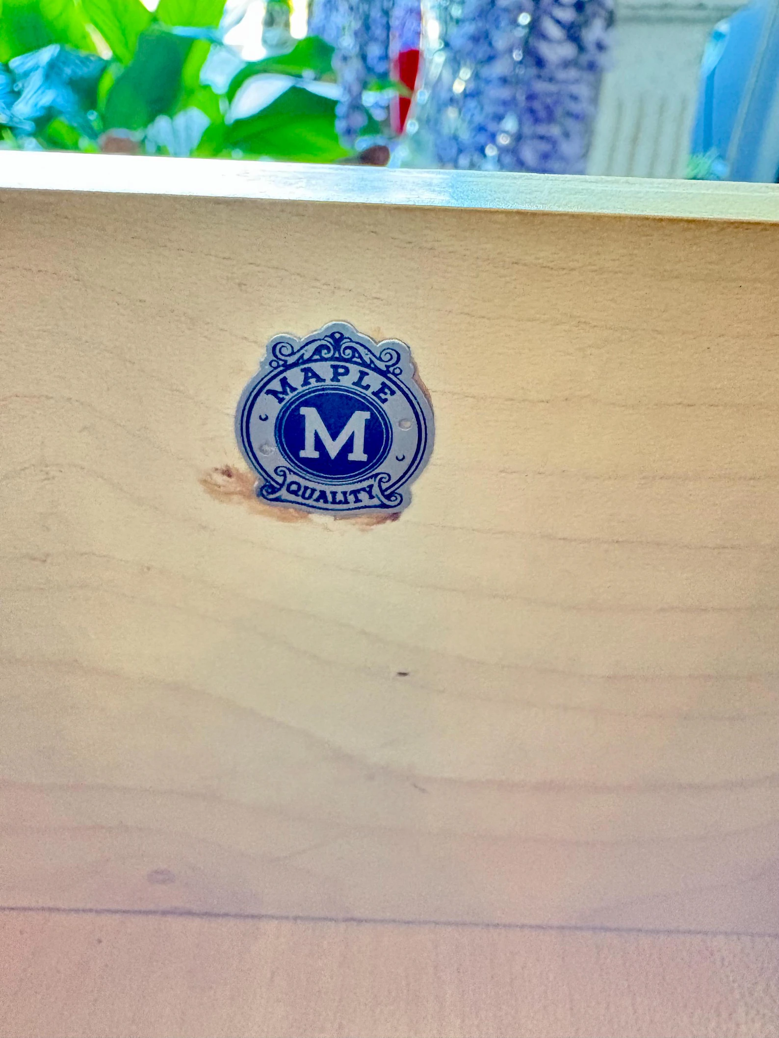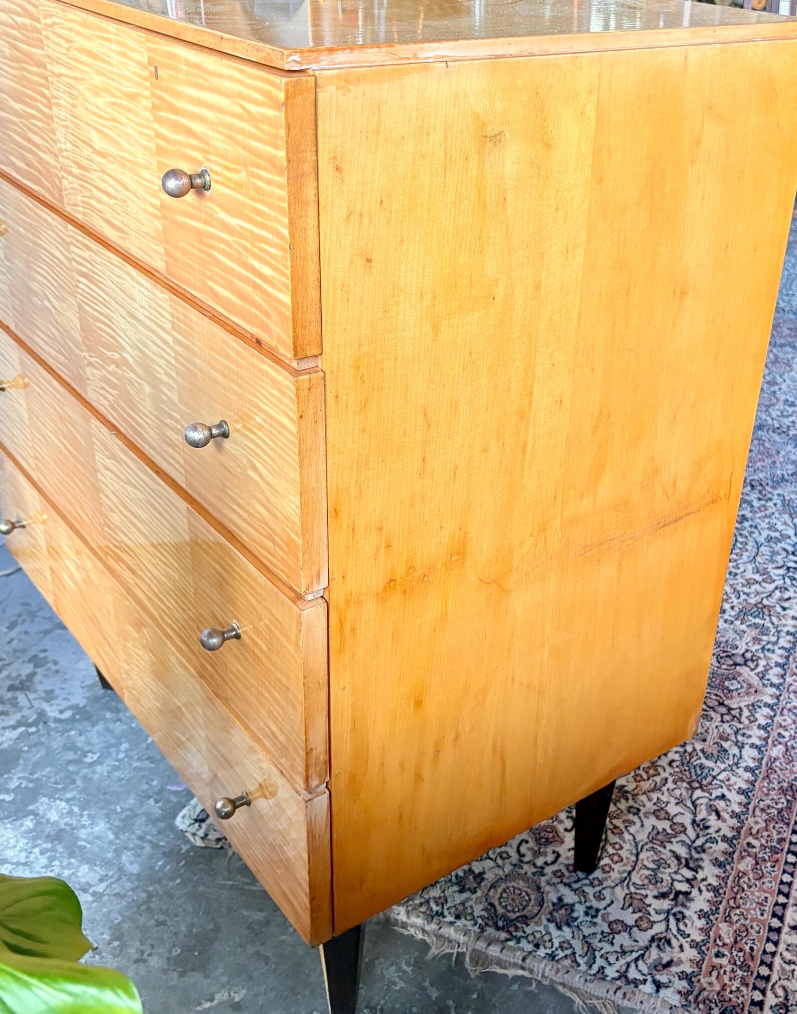 Vintage Mid-Century Maple Chest of Drawers | Restored Tiger Grain Veneer, Brass Knobs